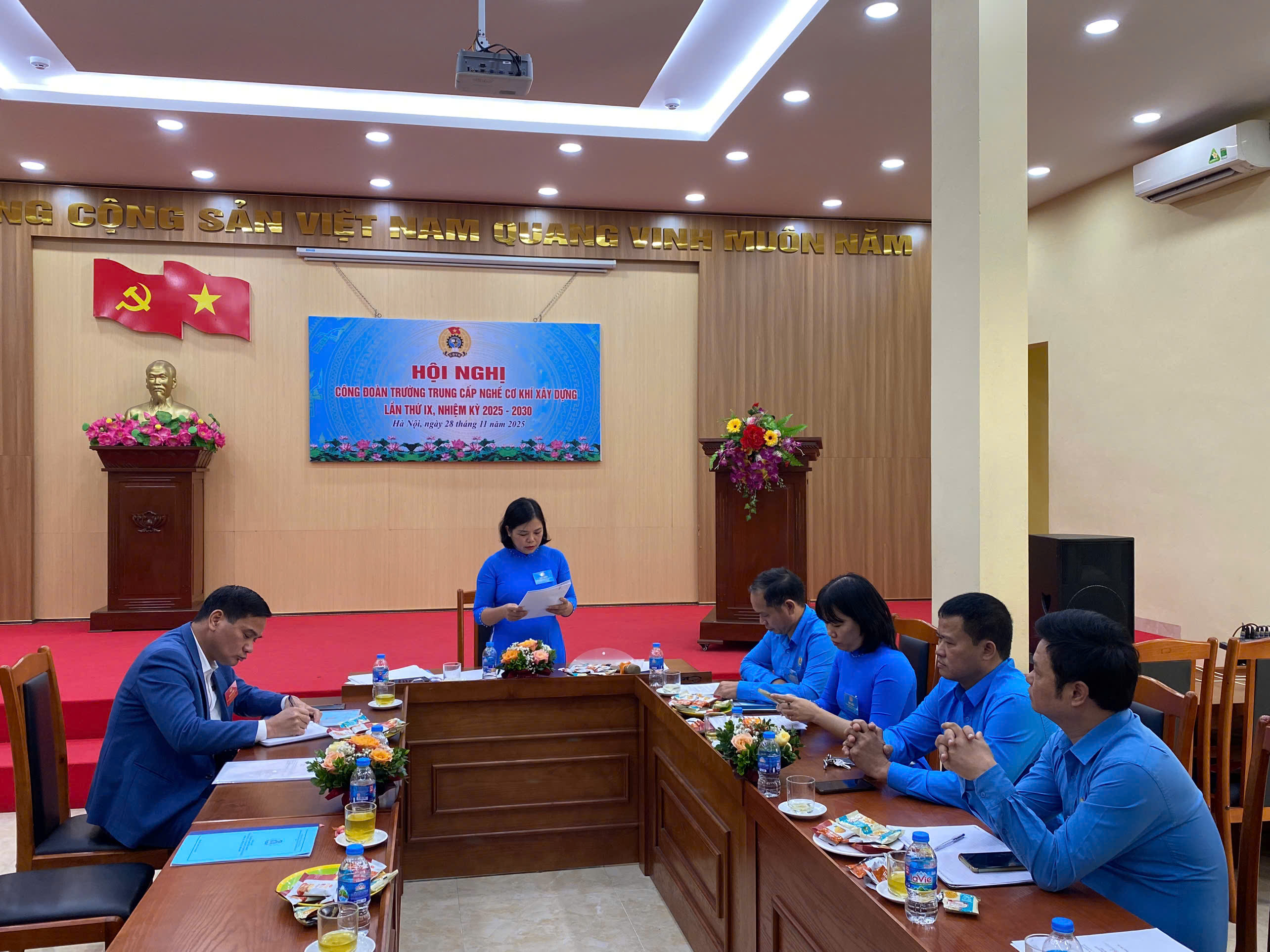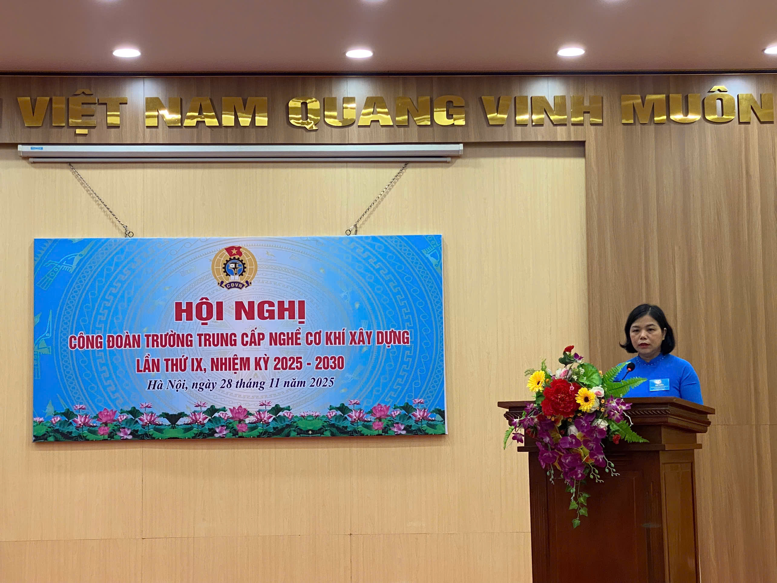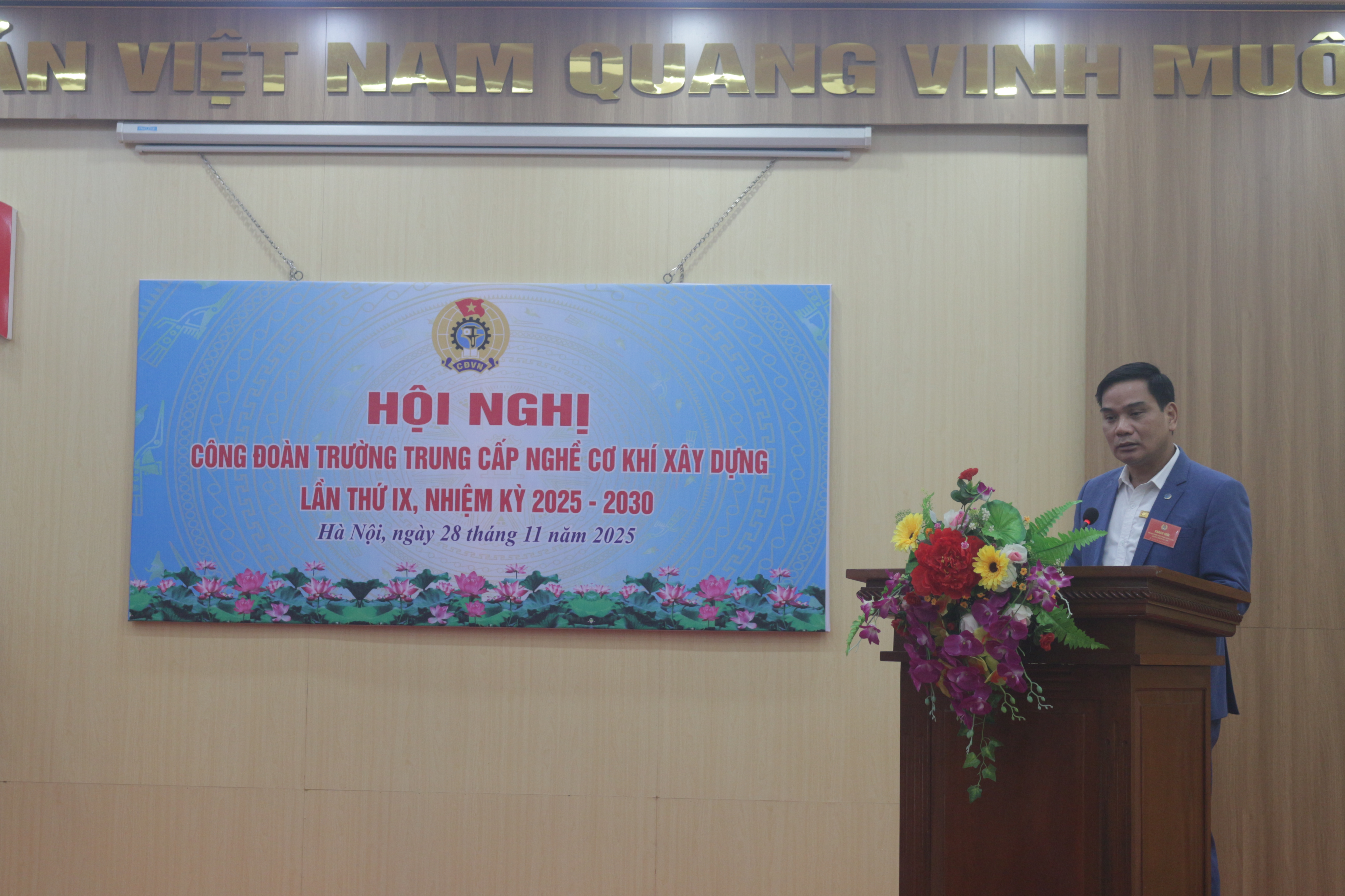 Sáng ngày 28/11/2025, Công đoàn Trường Trung cấp nghề Cơ khí xây dựng đã tổ chức Hội nghị Công đoàn Trường Trung cấp nghề Cơ khí xây dựng lần thứ IX nhiệm kỳ 2025 - 2030. Đây là hoạt động có ý nghĩa chính trị sâu sắc, thể hiện trách nhiệm của tổ chức Công đoàn trong việc tổng kết nhiệm kỳ cũ, đề ra phương hướng nhiệm kỳ mới và khẳng định vai trò đồng hành cùng sự phát triển của nhà trường.