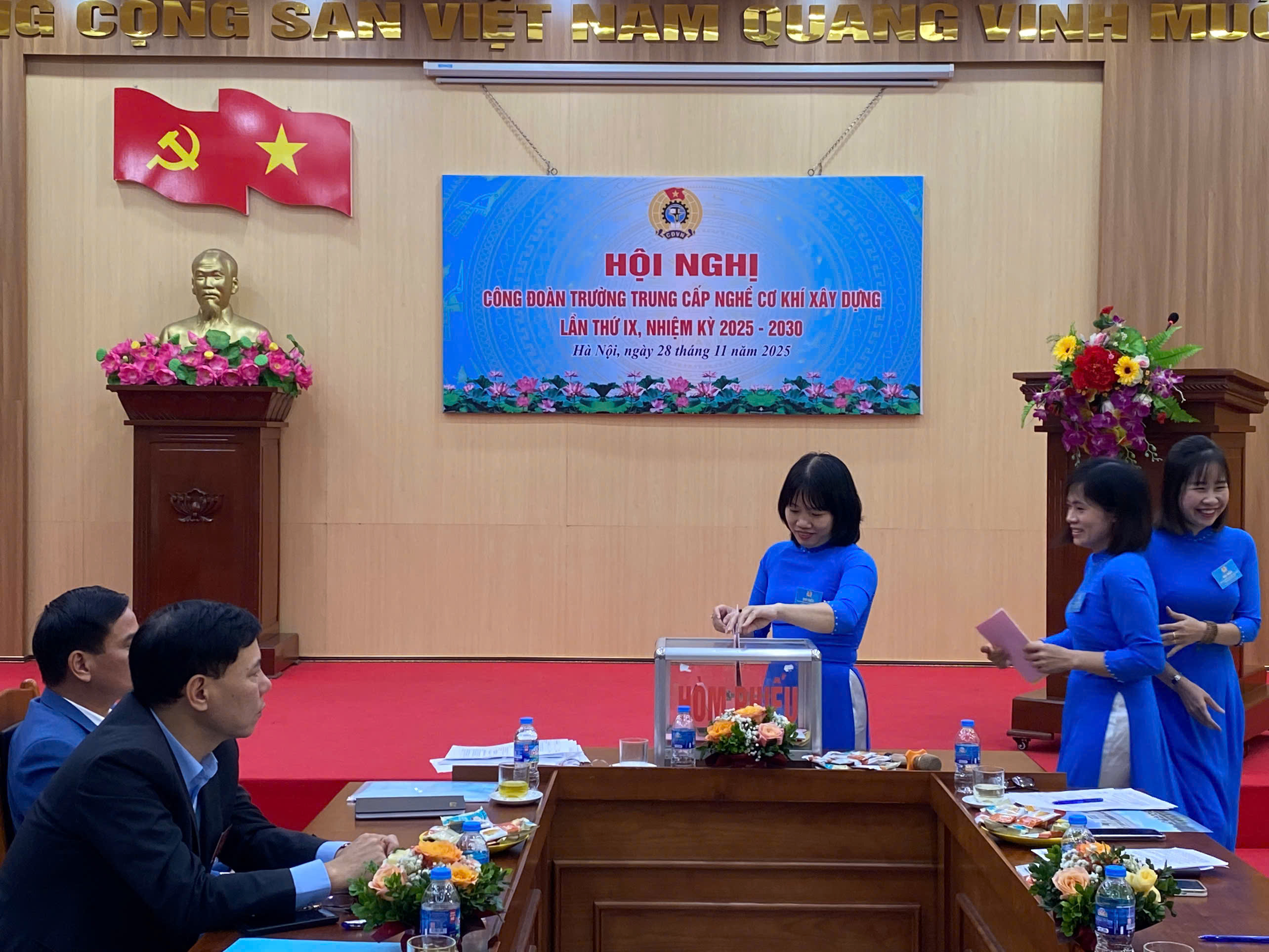 Trên tinh thần dân chủ, đoàn kết, Hội nghị đã lựa chọn và bầu ra Ban Chấp hành Công đoàn Trường lần thứ IX nhiệm kỳ 2025 - 2030 gồm 05 đồng chí có đủ tiêu chuẩn và năng lực, bầu 1 đại biểu chính thức và 1 đại biểu dự khuyết đi dự Đại hội Công đoàn Xây dựng Việt Nam lần thứ XV nhiệm kỳ 2025 – 2030.